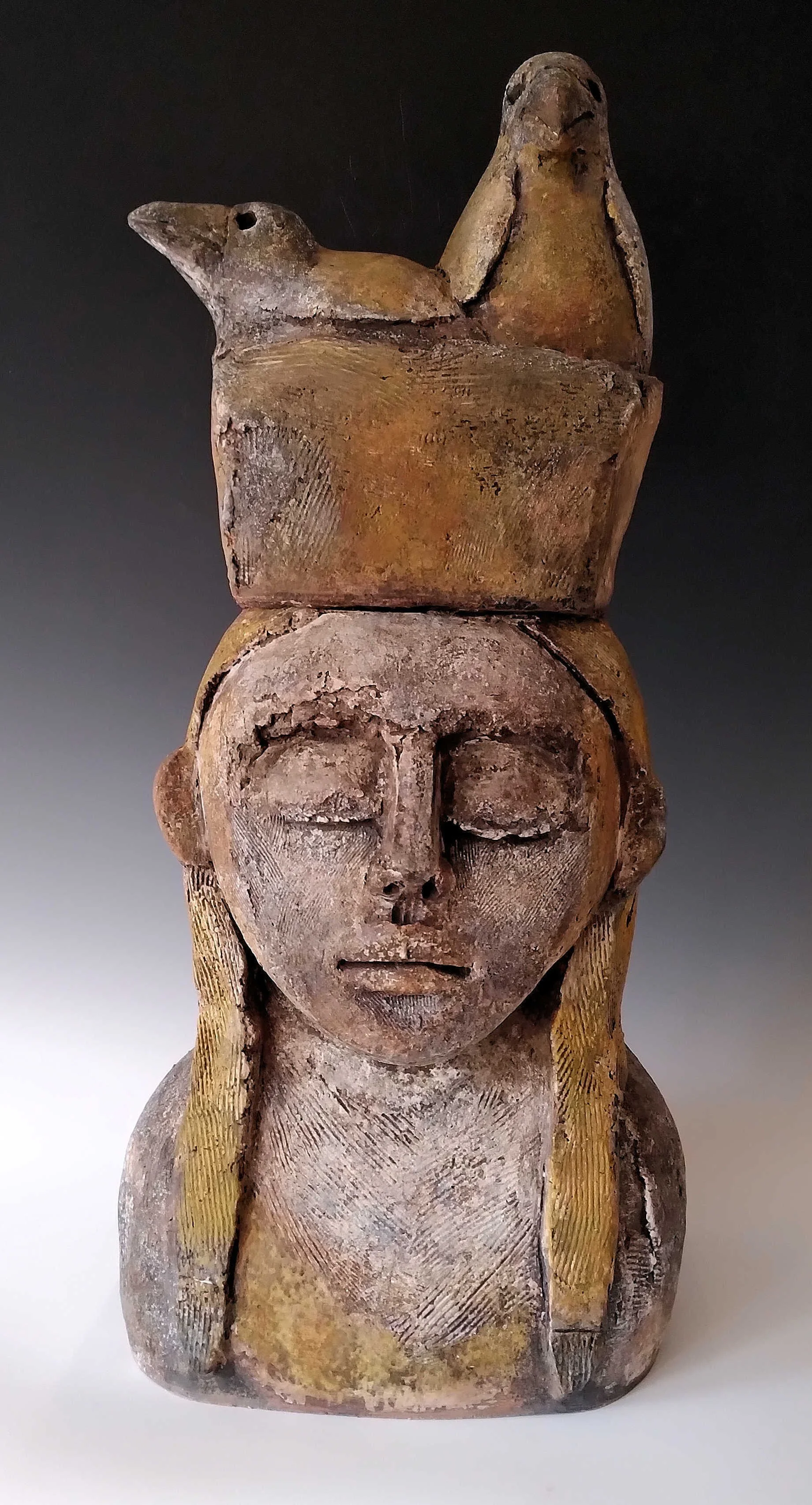 Woman and 2 Birds in a Basket